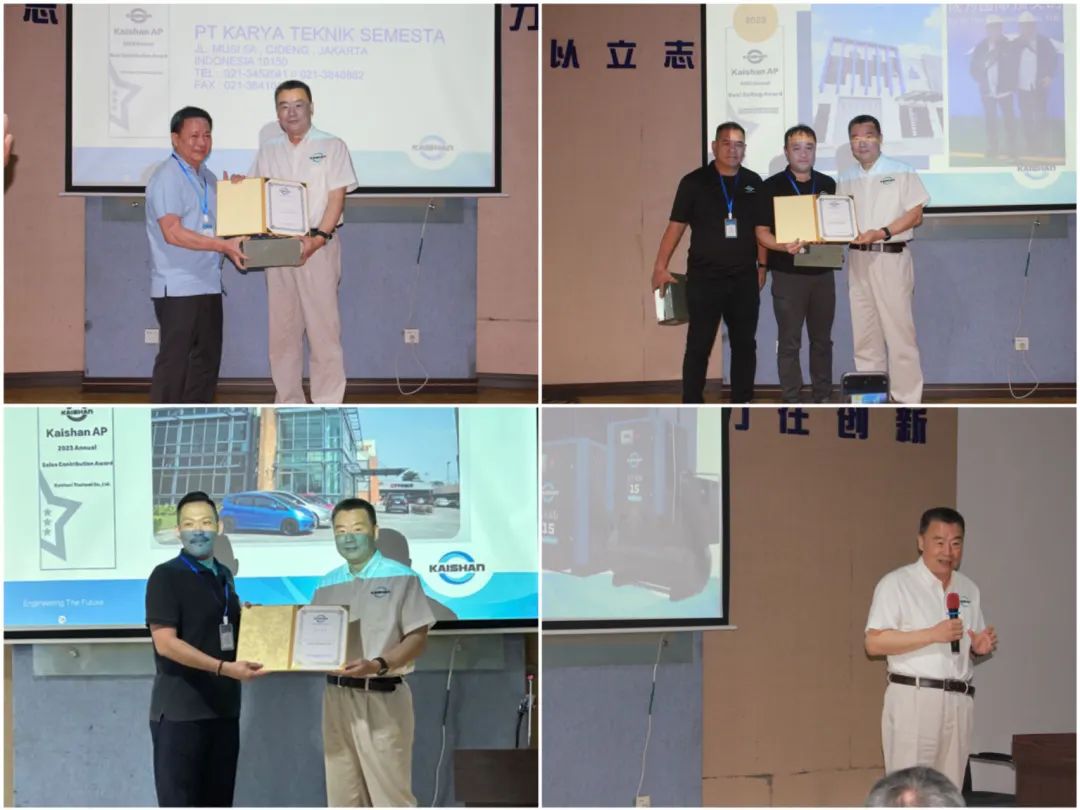 曹克坚董事长出席了会议,他向三家获得最佳销售、贡献奖的马来西亚、泰国、印度尼西亚经销商颁发了获奖证书。